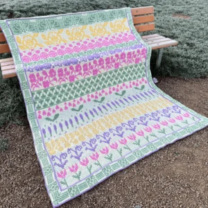 Begin your British Country Garden Blanket CAL journey with the nostalgic Cosy Cottage Tulips Mosaic Motif. This beautiful overlay crochet pattern sets a tone of warmth and mindful stitching for your year-long project.