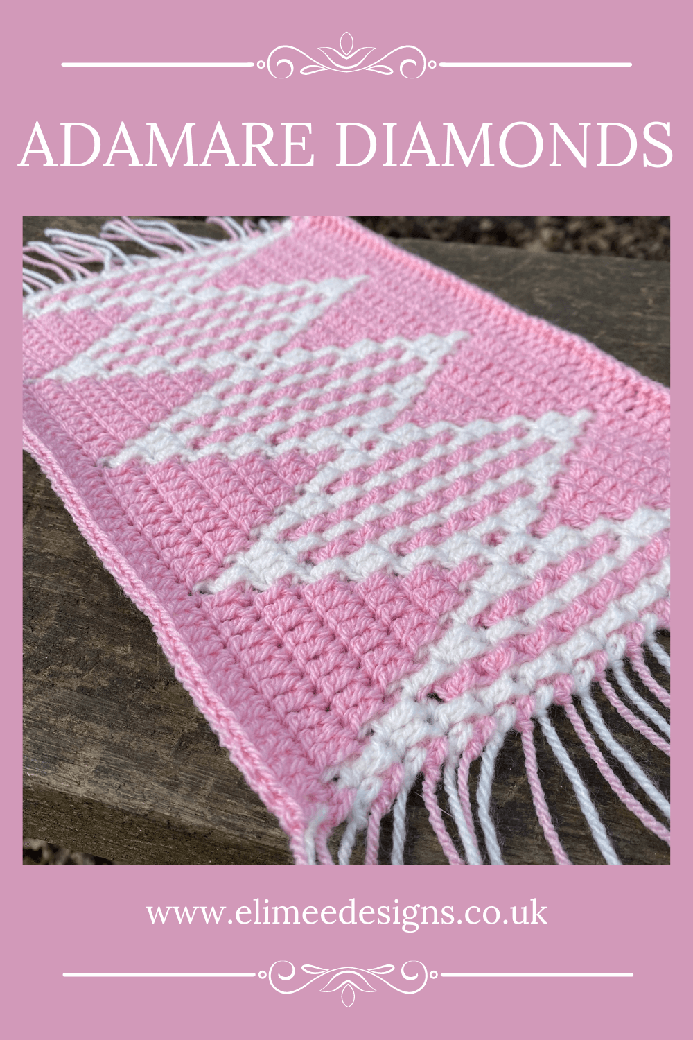 I like to try and think up interesting ways to name my patterns. The line ‘diamonds are a girls best friend’ kept coming to mind whilst I was brainstorming ideas. Frequently I use words from other languages to create a unique name for my crochet patterns e.g. ‘Mariposa Butterfly Blanket’, ‘Mariquita Ladybird Blanket’, or ‘Amore Hearts Baby Blanket’. Whilst doing some googling I came across the term ‘adamare’. This word is from the Latin meaning ‘to love passionately’. I thought that this was the perfect representation for why diamonds are often given as gifts.