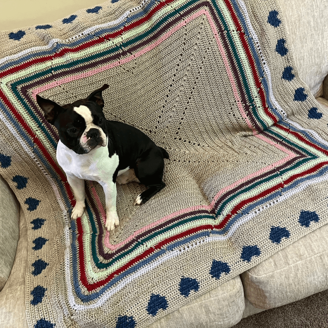 This timeless design is crocheted in the round, featuring four delicate filet hearts that form the centerpiece of the design. Surrounding these larger hearts is a border of smaller hearts, crafted using the tapestry crochet technique. When coming up with a name for this design I came across the word ‘Amore’, which means love in Italian. I felt that this was the perfect way to represent not only the hearts featured in the design, but to embody the love and care that you will put into every stitch.