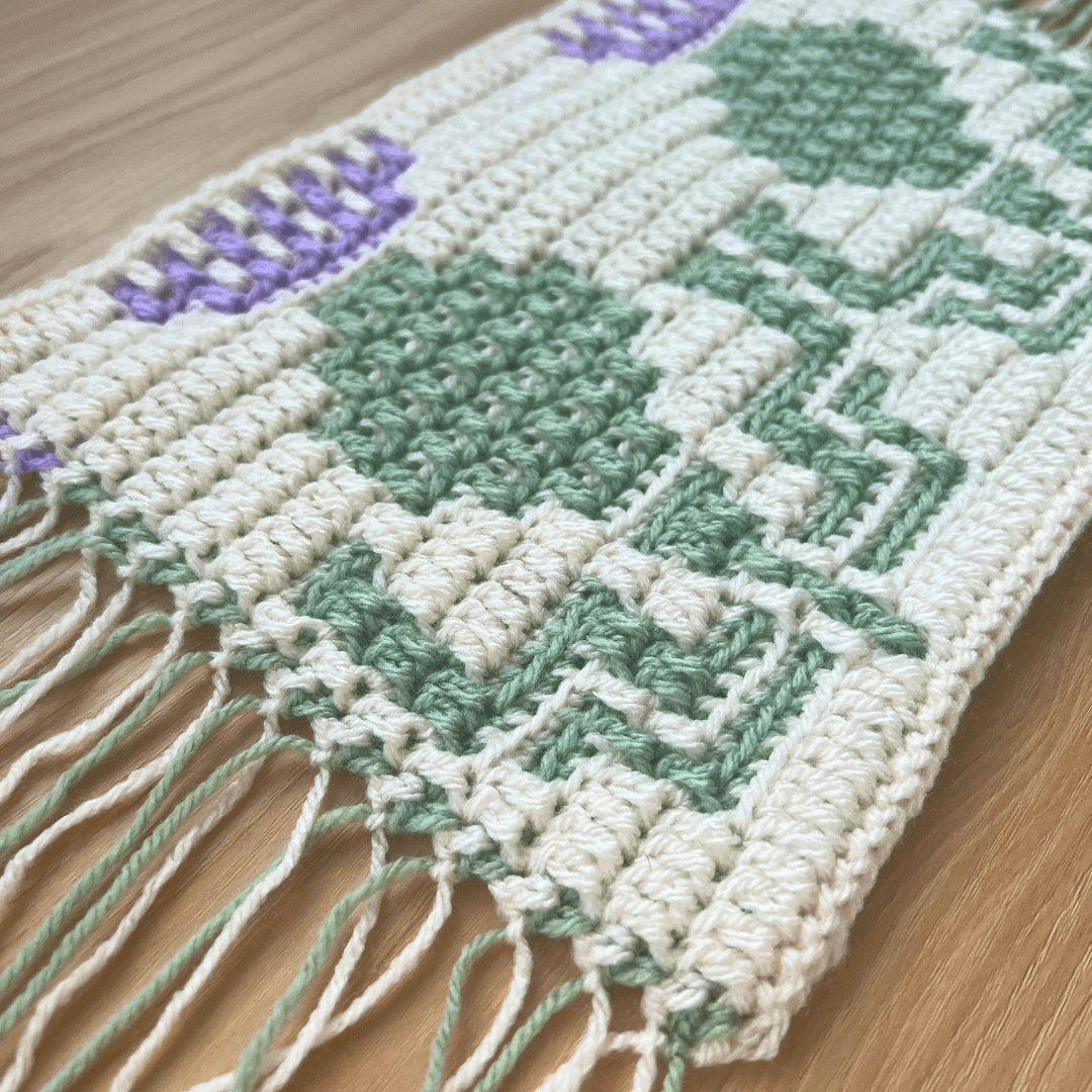 Bring a touch of timeless English charm to your blanket with the Mosaic Ivy Vines Motif. Inspired by climbing ivy and lush garden trellises, this overlay mosaic crochet pattern features elegant geometric leaves that flow across your stitches with effortless rhythm. Perfect for adventurous crocheters, it adds rich texture and botanical beauty to your crochetproject while helping you master colorwork techniques one row at a time.
