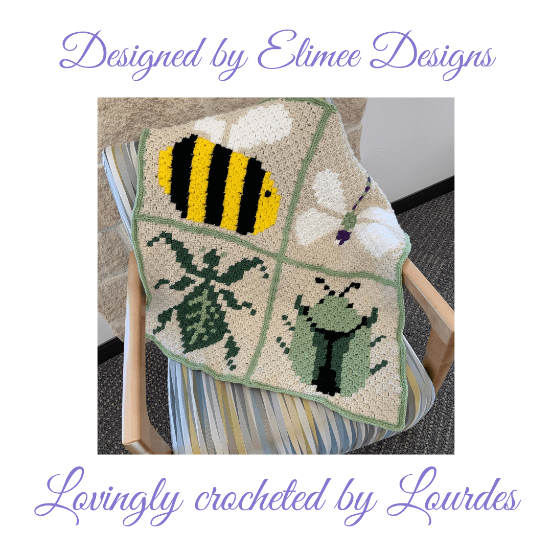 The Brody Bee Square is just one part of the Beautiful Bugs Blanket CAL. Join our community of fellow crocheters in the Elimee Designs Facebook group, where we share tips, progress, and the joy of bringing these bug-inspired creations to life. Plus, the CAL offers a fantastic opportunity to learn new techniques and bond with like-minded crafting enthusiasts.