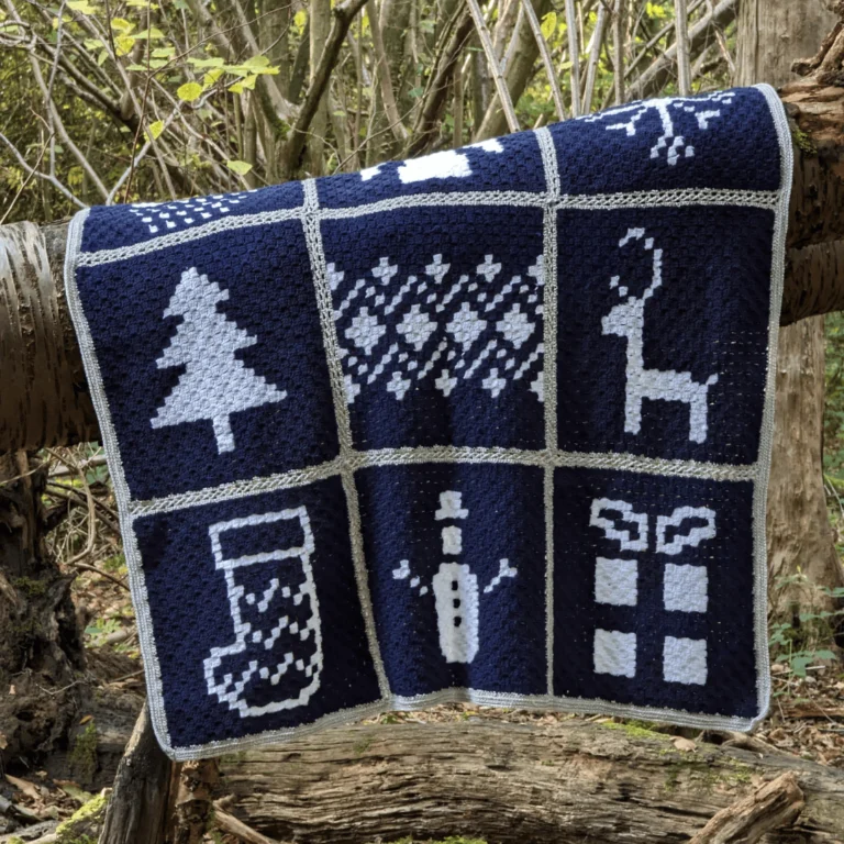 Design your own unique Festive Hygge Blanket with this C2C crochet pattern. Choose from 15 delightful Christmas motifs to create a cozy afghan perfect for holiday snuggles.