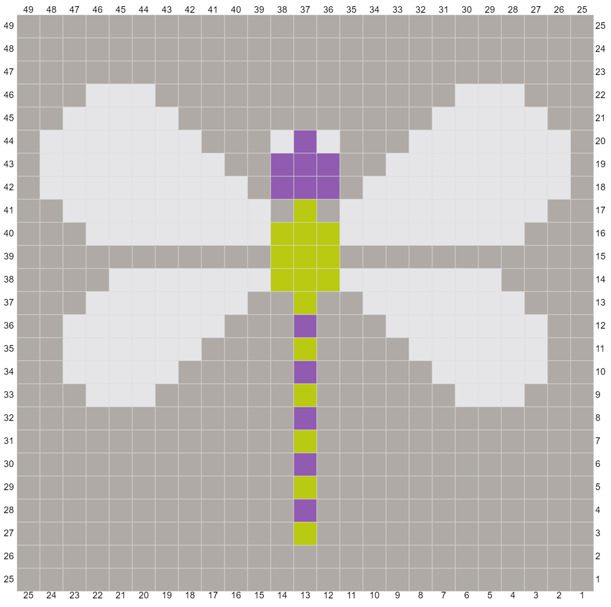 Daphne is not just a square; she’s a canvas of possibilities. While she takes her place in the CAL, her charm extends beyond. Imagine her delicate wings adorning your home — as a pot holder, a cushion cover, or multiplied into a breathtaking dragonfly-themed blanket. The choice is yours; the magic is in your hands.