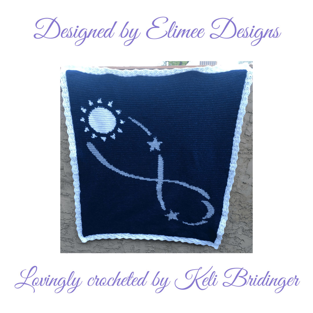 Designed with care,, this captivating crochet pattern is the perfect gift for a cherished little one in your life. This blanket showcases a beautiful combination of symbols, including an infinity sign, a radiant sun, a serene moon, and a sprinkle of twinkling stars. Its intricate yet accessible intarsia technique will bring joy to advanced beginners and experienced crocheters alike.