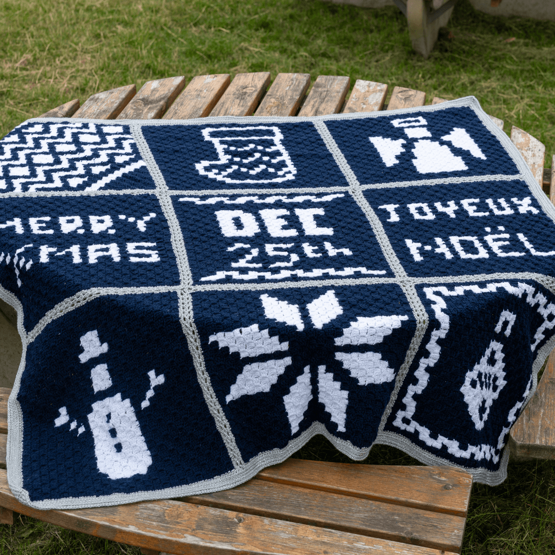 This festive afghan is a C2C (corner-to-corner) based crochet pattern featuring 15 motifs, of my favourite Christmas things, for you to choose from so that you can make your blanket completely unique.