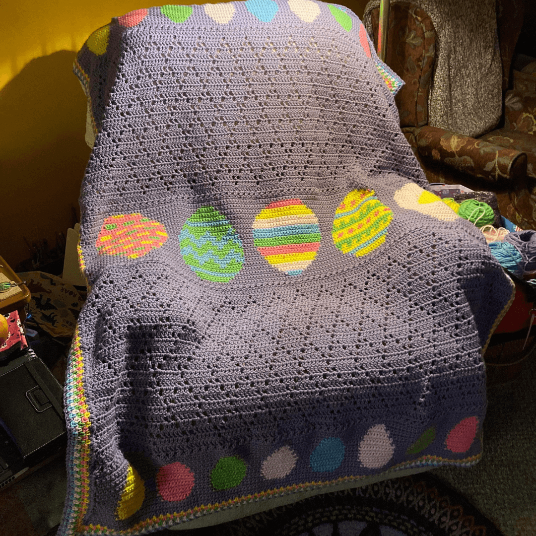 If you enjoy crocheting the So Eggstra blanket you might also like our Waggle Dance Bee Blanket 😀.