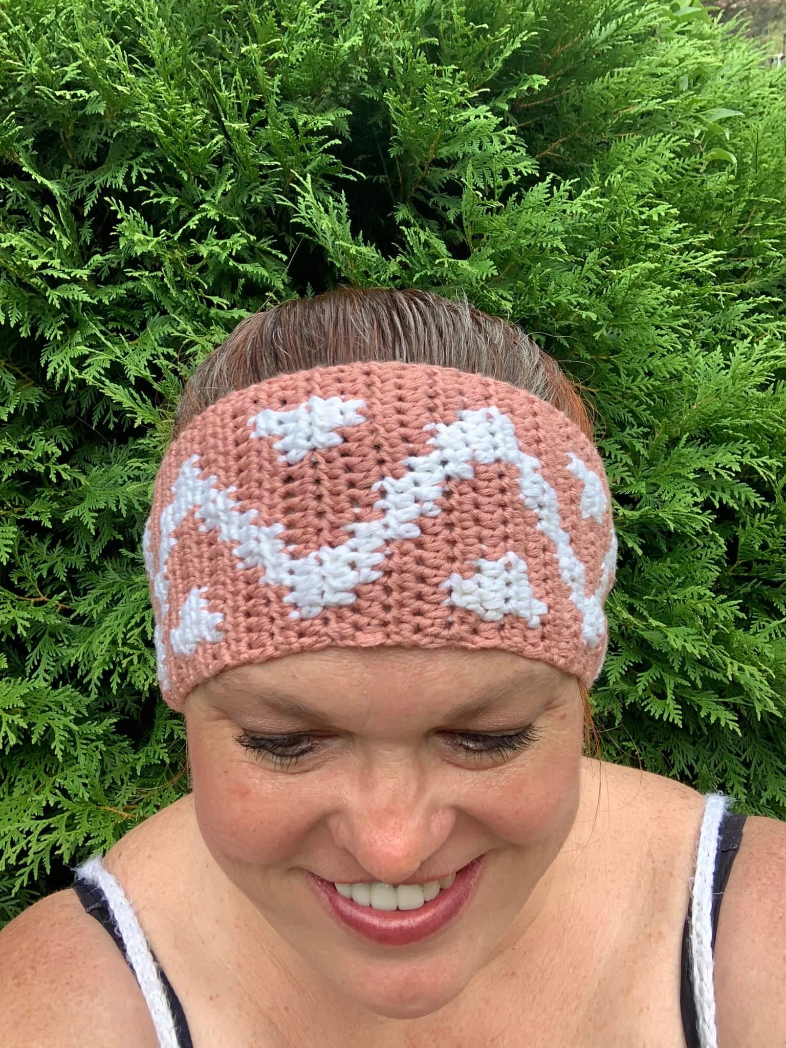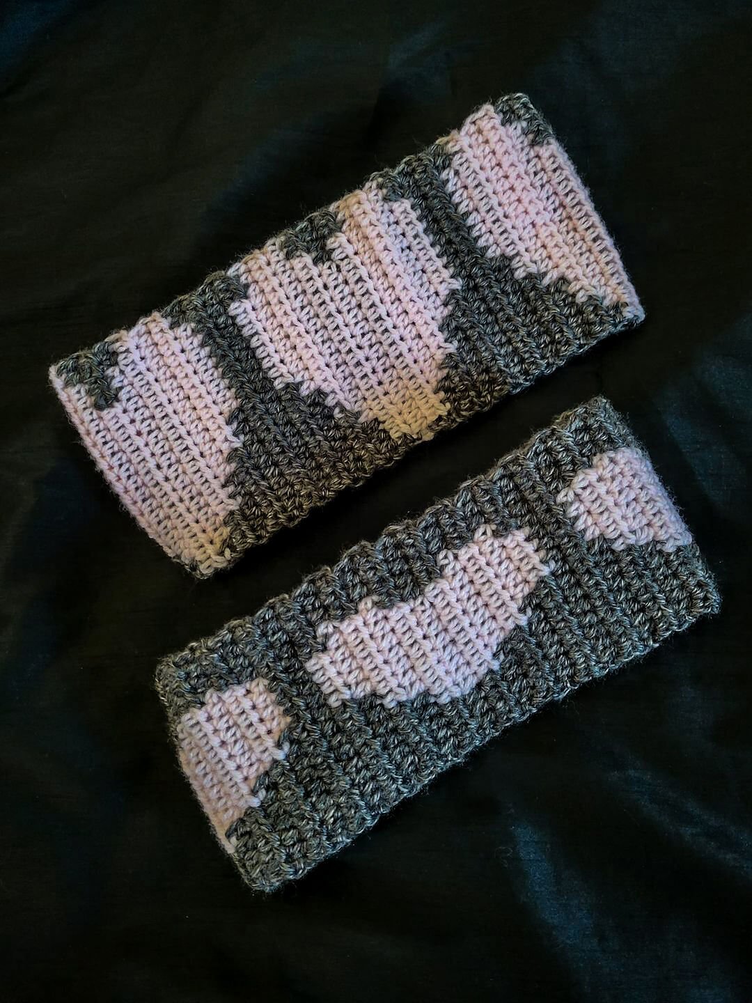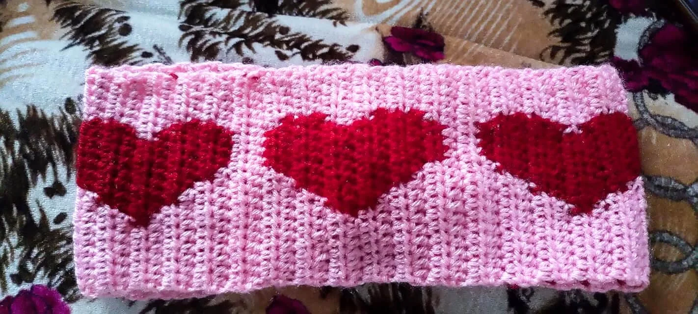 There are three motifs included within the pattern file – rainbows, hearts and zigzags. Each motif comes in a smaller and larger size so that the ear warmers can be made in every size from newborn up to large adult.